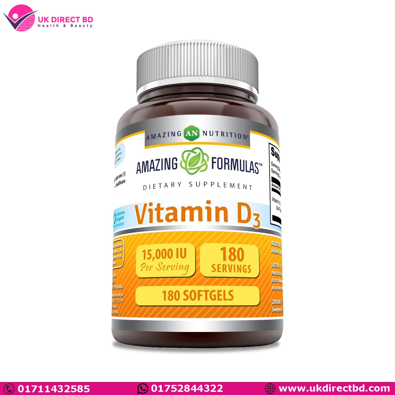 Amazing Nutrition Amazing Formulas Vitamin D3 Supplement 15000iu Per Serving 180 Count Softgels USA