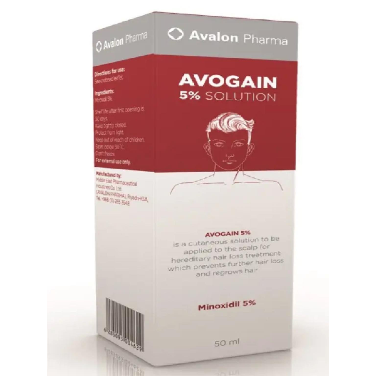 Avogain 5% is a topical solution that stimulates hair growth and prevents hair loss.