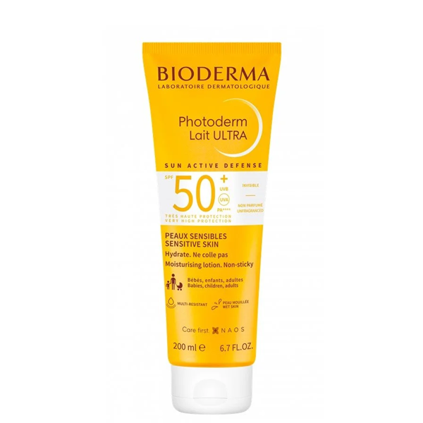 Bioderma Photoderm Lait Ultra Moisturising Lotion SPF50+ 200ml is a fragrance free and invisible lotion of high technology of sun protection, reinforced in the UVA.