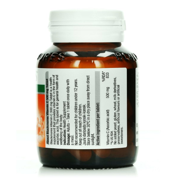 Blackmores Vitamin C 500 is a dietary supplement that provides vitamin C in the form of ascorbic acid. This easy-to-swallow tablet is suitable for those who require additional vitamin C for general health and wellbeing of the body.