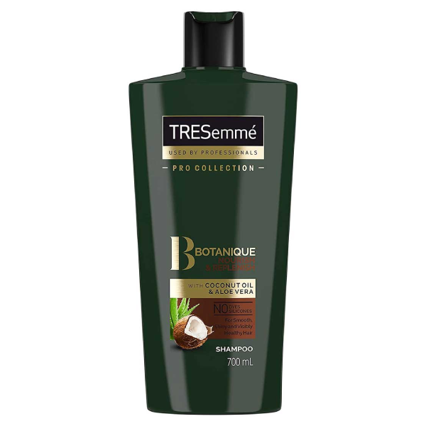 TRESemme botanique nourish and replenish shampoo 700ml online from Cellsii.com. This has blended professional formulas with natural ingredients, including a blend of coconut milk and aloe Vera, to create a range that nourishes and replenishes hair.