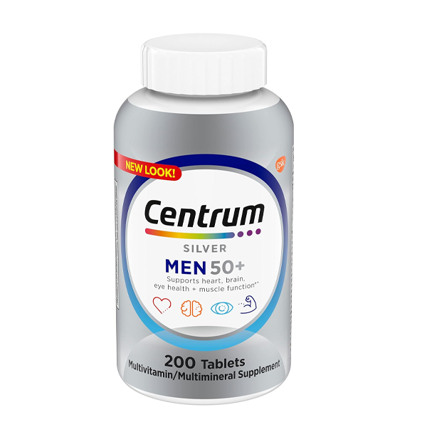 Centrum Silver Multivitamin for Men 50 Plus is a multivitamin/multimineral supplement with micronutrients to help support wellness complete from A to zinc (1). The daily multivitamin for men over 50 contains Vitamin D and magnesium to help maintain muscle health, B Vitamins to help promote heart health, zinc to help support brain function, lutein and Vitamins A, C, and E to support healthy eyes (1, 2, 3). The senior multivitamin for men is a verified Non-GMO (4) and gluten free multivitamin supplement for men. The men’s multivitamin has a coating that makes the multivitamins for seniors easy to swallow. Take one of the senior men’s vitamins to provide your body with vitamins and minerals. Centrum Silver is the number 1 Doctor recommended multivitamin brand now shown to support memory and cognition in older adults (1).* * IQVIA: Claim substantiation Validation Statement. July 2023. IQVIA, using the ProVoice Survey, recorded the product recommended most often within the Adult Multivitamins category by physicians and pharmacists in the United States. A statistically significant majority of the panel of physicians and pharmacists responded that Centrum is the product they endorse most.(1) These statements have not been evaluated by the Food and Drug Administration. This product is not intended to diagnose, treat, cure or prevent any disease.(2) Not a replacement for cholesterol-lowering drugs (1) (3) about our Non-GMO standard on Centrum’s official website.