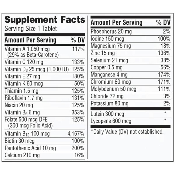 - Special age-adjusted formula helps support heart health and brain function, maintains healthy eyes, and supports healthy muscle function in men 50 years and older.