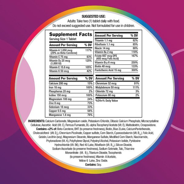 • Women’s multivitamin tablets with iron and B Vitamins to support daily energy needs (1)