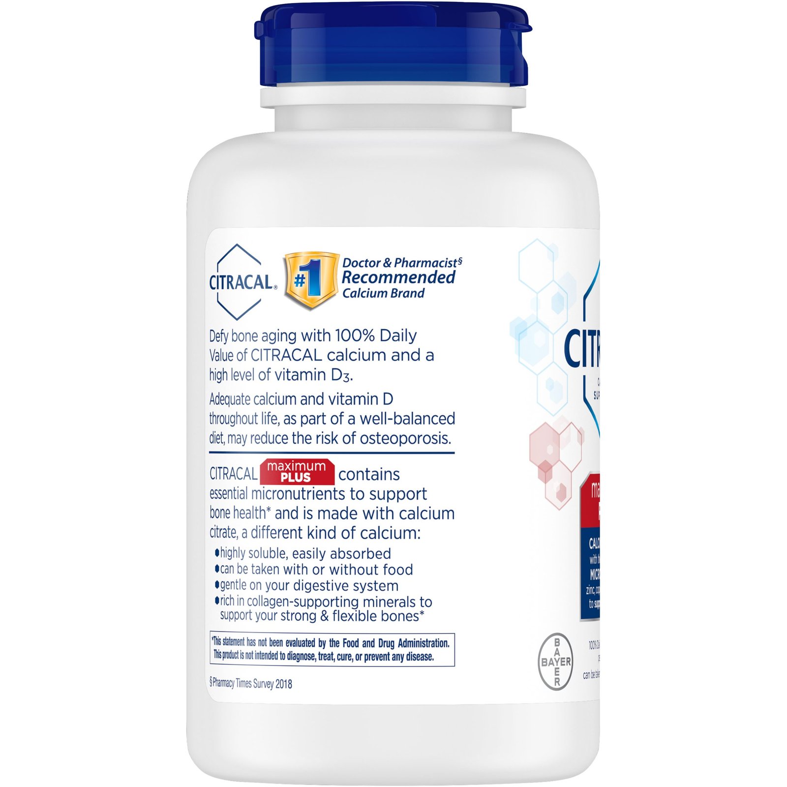 - Citracal Maximum Plus Calcium Citrate With Vitamin D3, Caplets, 180ct: DEFY BONE AGING: Citracal Maximum Plus is a sugar free calcium supplement, providing 630 mg of calcium per serving to help support bone health* as part of your overall wellness and fitness regimen; just 2 caplets twice a day
