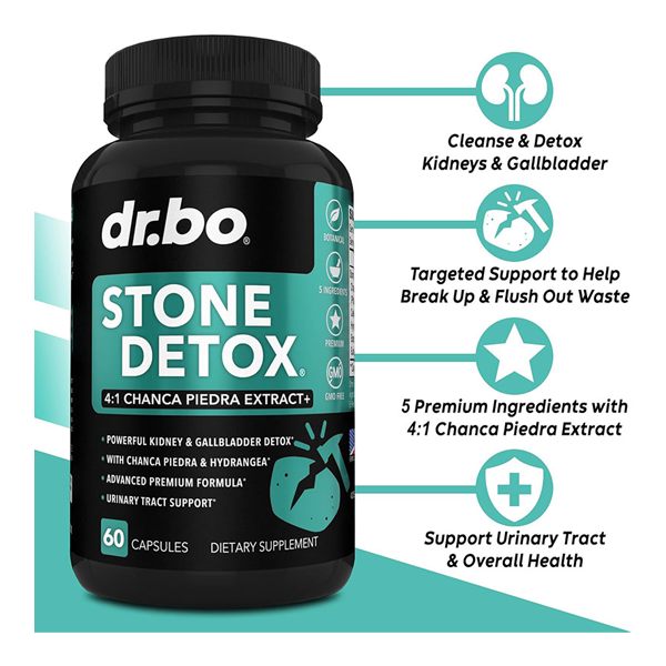 Dr.bo Stone Detox – 60 Capsules, Stoen Detox is a special combination of powerful ingredients to help the kidneys and gallbladder function more effectively, while also helping the body to alkalinize acidic buildup in those organs and cleanse, detox & flush that waste buildup out.