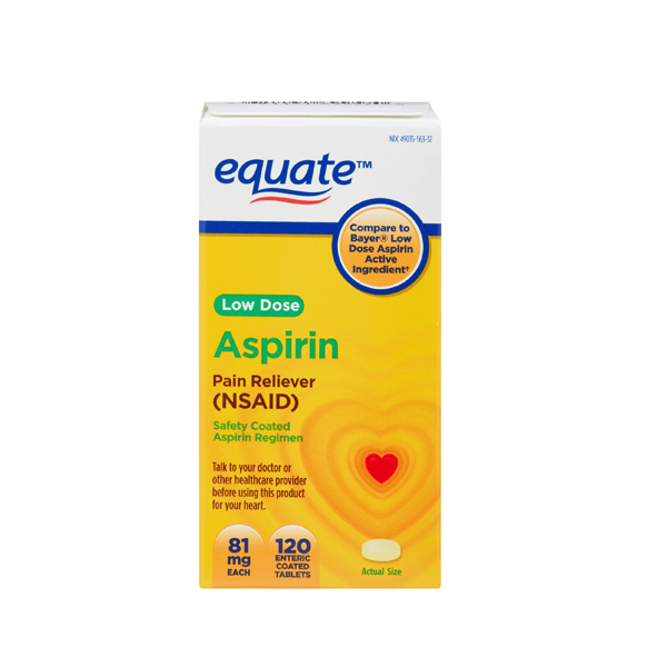 Equate Safety Coated Low Dose Aspirin Tablets for Pain Relief 81mg 120 Count