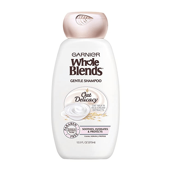 • Garnier Whole Blends Gentle Shampoo Oat Delicacy with Oat Milk and Rice Cream Extracts gently moisturizes and softens without weighdown and is tested on sensitive scalp