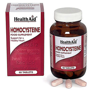 HealthAid Homocysteine Tablets are specifically formulated to help maintain homocysteine levels both in healthy individuals and for those people with high homocysteine levels. It contains specific essential B vitamins including Folic acid, vitamin B12 and B6. Also contains Choline, Inositol Trimethylglycine (TMG) and the mineral Zinc. All these nutrients are required in the maintenance of homocysteine and to help care for the heart.