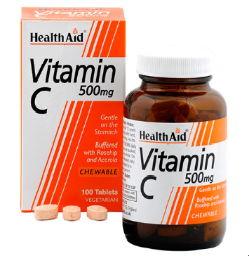 HealthAid Vitamin C 500mg Chewable Tablets is specially formulated with rosehip and acerola to give a buffered vegetarian tablet that does not irritate the stomach and is rapidly absorbed.