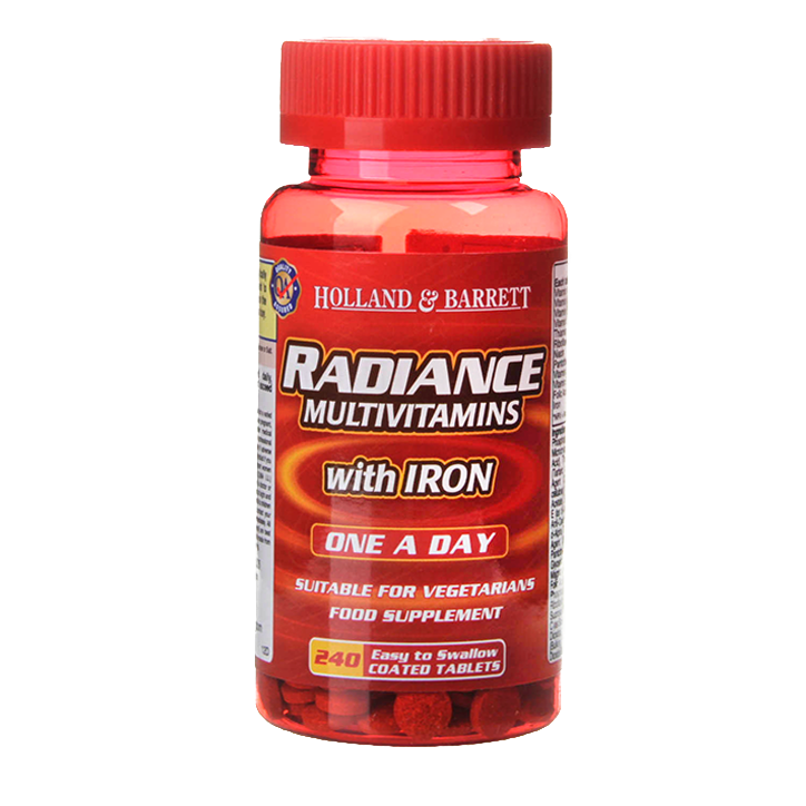 Holland & Barrett Radiance Multi Vitamins & Iron One a Day Tablets contain a multi-vitamin and mineral formula that provides all round nutritional support for adults in a convenient and economical one-a-day caplet.