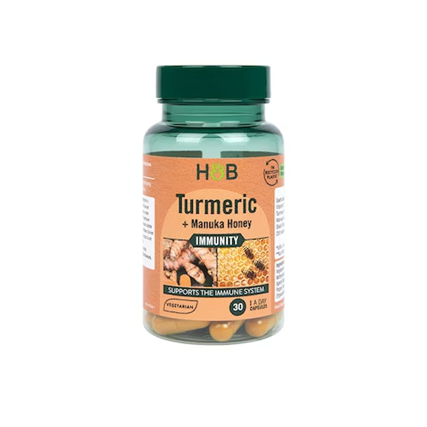 Holland & Barrett Turmeric plus Manuka Honey capsules contribute towards bone and joint health. These Turmeric capsules are blended with Vitamin D, Black Pepper Extract and Manuka Honey.