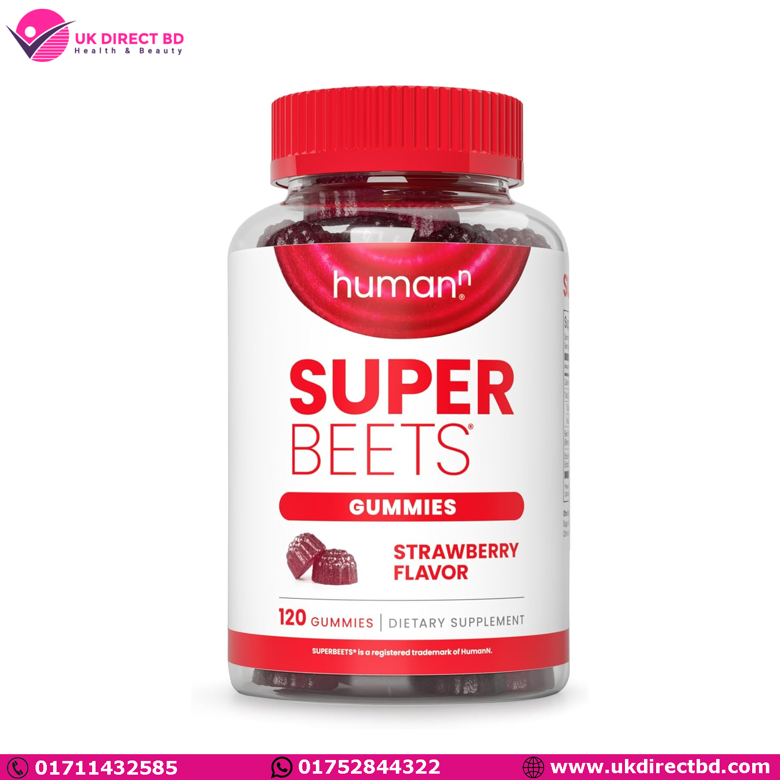 humanN SuperBeets Strawberry Heart Gummies Beetroot & Grape Seed Extract 120 Count