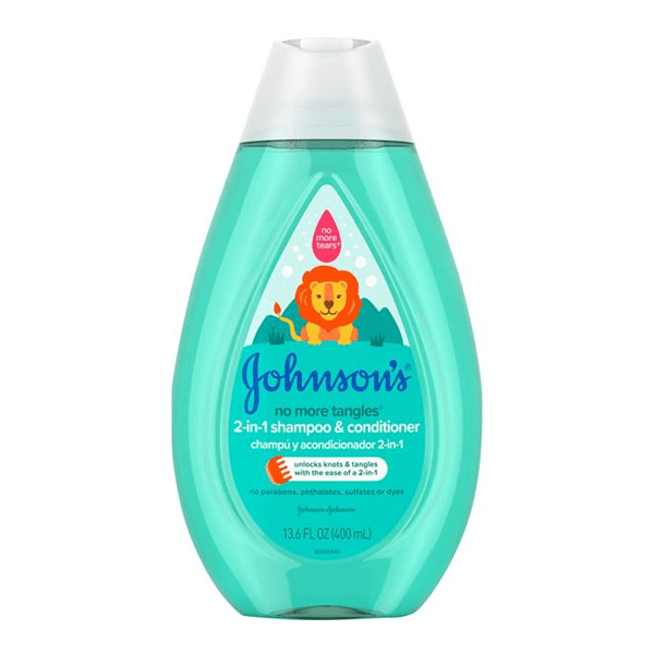 Cleanse, condition, and detangle your child’s hair in just one step with Johnson’s No More Tangles 2-in-1 Shampoo & Conditioner. Specially designed to help keep kids and toddler’s hair manageable, this 2-in-1 detangling shampoo and conditioner helps unlock knots & tangles for soft, smooth, easy-to-manage hair. The No More Tears formula is as gentle to the eyes as pure water. Johnson’s No More Tangles 2-in-1 Shampoo & Conditioner is hypoallergenic; pediatrician tested; and free of parabens, phthalates, sulfates, and dyes. this kidsshampoo and conditioner is designed to meet or exceed the top internationally recognized regulatory standards. For best results, use with other Johnson’s No More Tangles products.