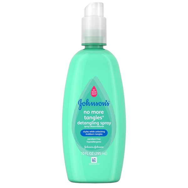 Johnson’s® No More Tangles® Detangling Spray. No More Tears®. Styles while unlocking stubborn tangles. Paraben-free. Hypoallergenic. Johnson & Johnson. 10 fl oz (295ml).