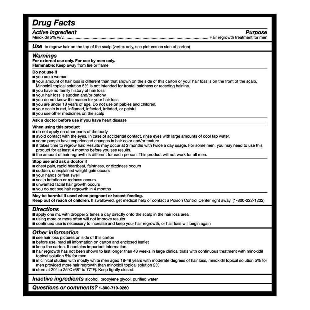 ★Kirkland signature minoxidil topical solution USP 5% is for men who have a general thinning of hair on the top of the scalp (vertex only). Minoxidil has been showing to regrow hair in men with low to moderate hair loss.