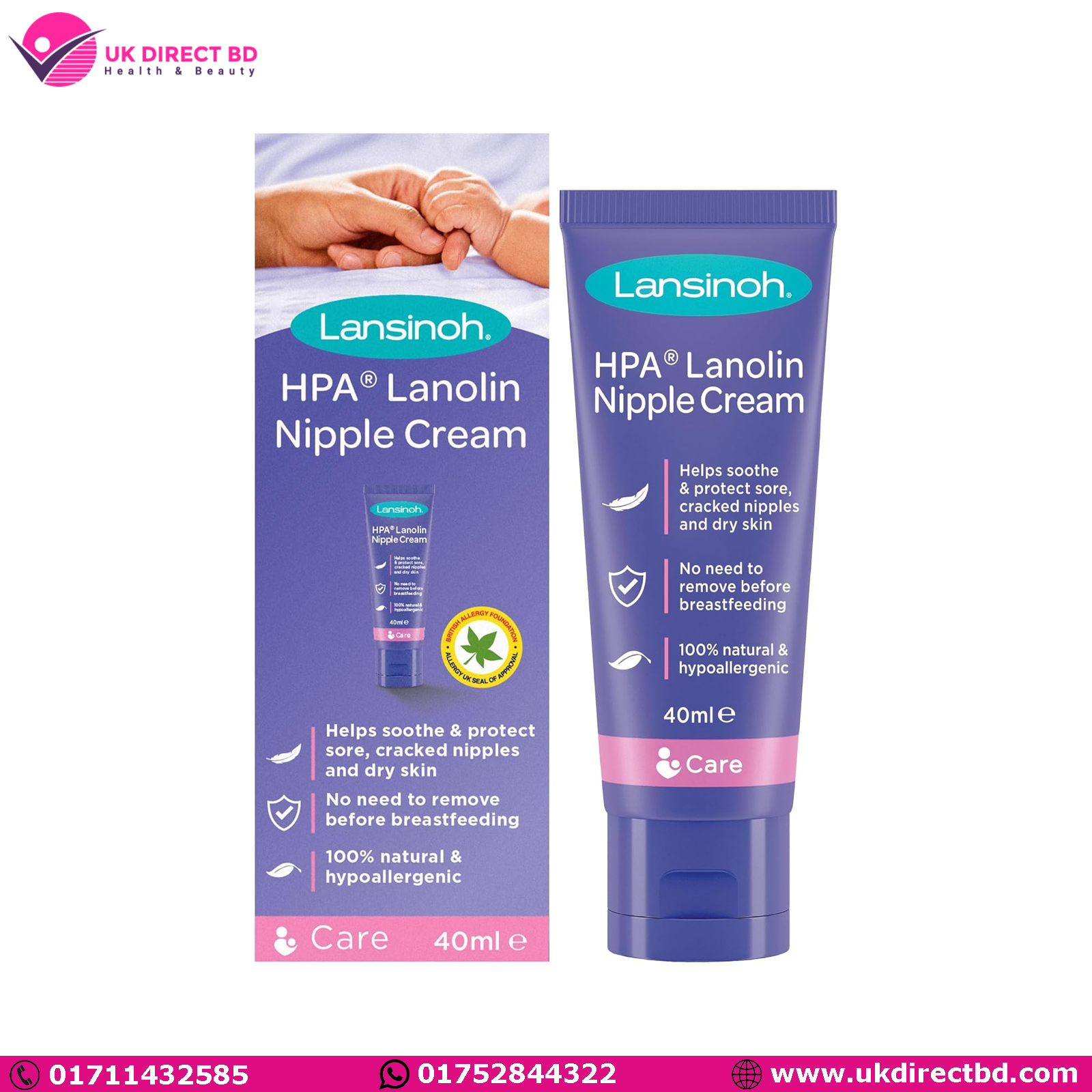 Lansinoh HPA Lanolin Nipple Cream for sore nipple & cracked skin 40ml