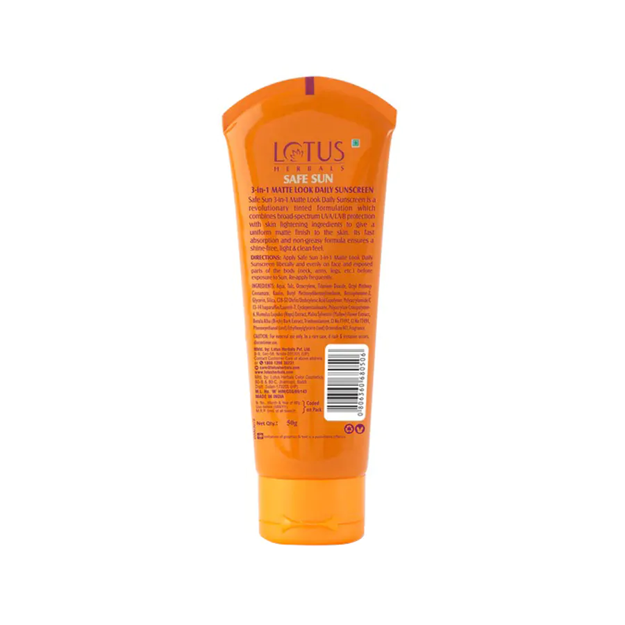 Protect your skin from UV radiation damage and environmental aggressors with the Lotus Herbals Safe Sun 3-in-1 Matte Look Daily Sunscreen SPF 40 PA+++ Sunscreen.