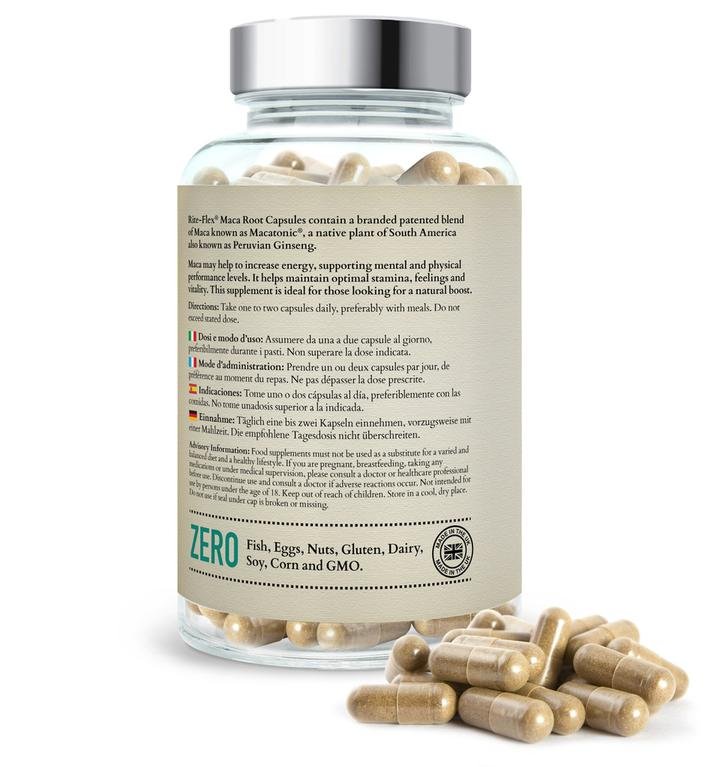 Rite-Flex Maca Root Capsules contain a branded patented blend of Maca known as Macatonic, a native plant of South America also known as Peruvian Ginseng.