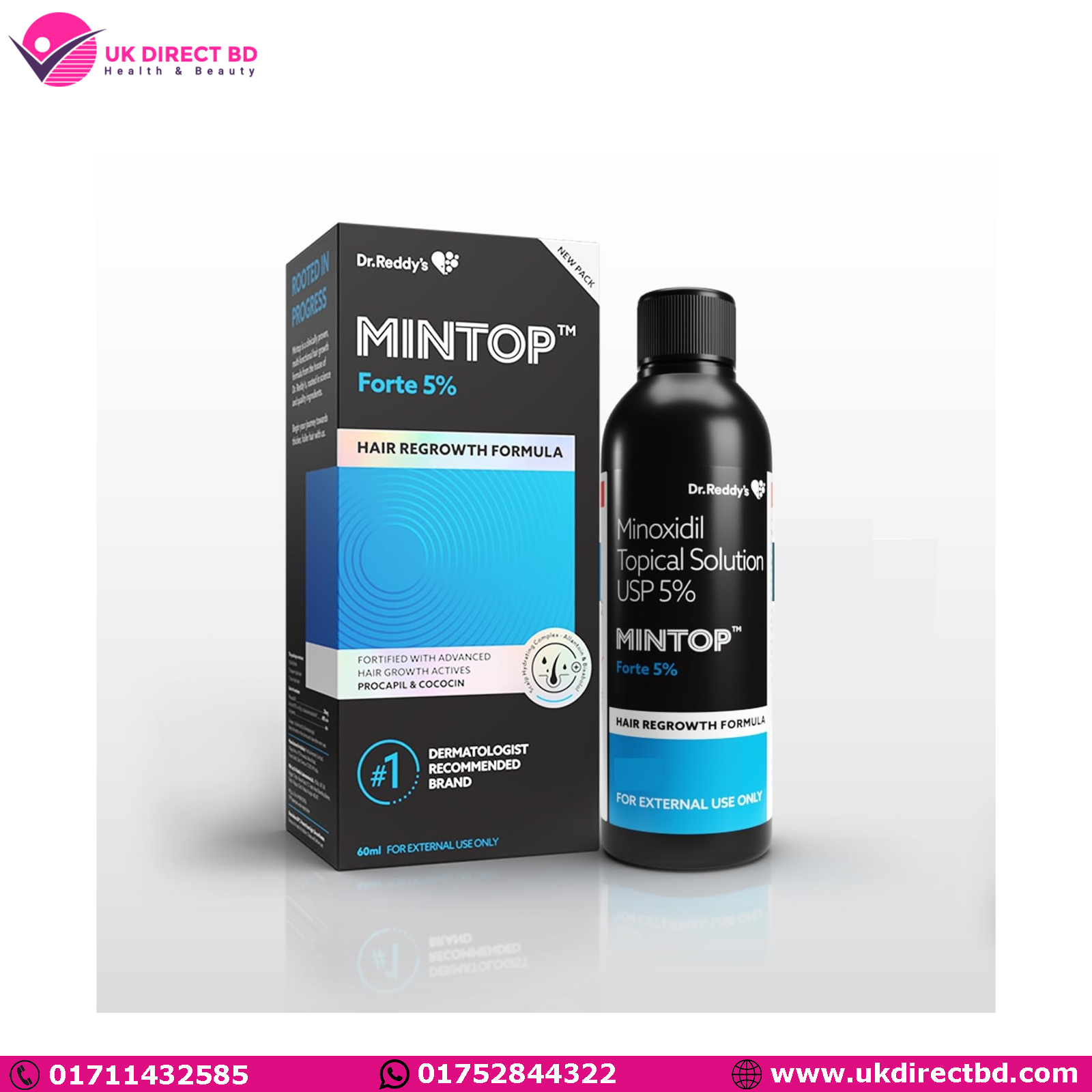 Mintop Forte 5% Bottle of 60ml Solution Hair Restore Formula with Minoxidil Reduces Hairfall