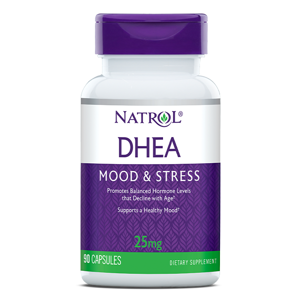 Keep your natural hormones in check every time you use Natrol DHEA 25mg, 90 Capsules. DHEA stands for dehydroepiandrosterone, which is a hormone naturally made in the body by the adrenal glands, and its production decreases with age.