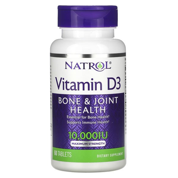Natrol Vitamin D3, Bone & Joint Health, Maximum Strength, 10,000 IU 60 Tablets