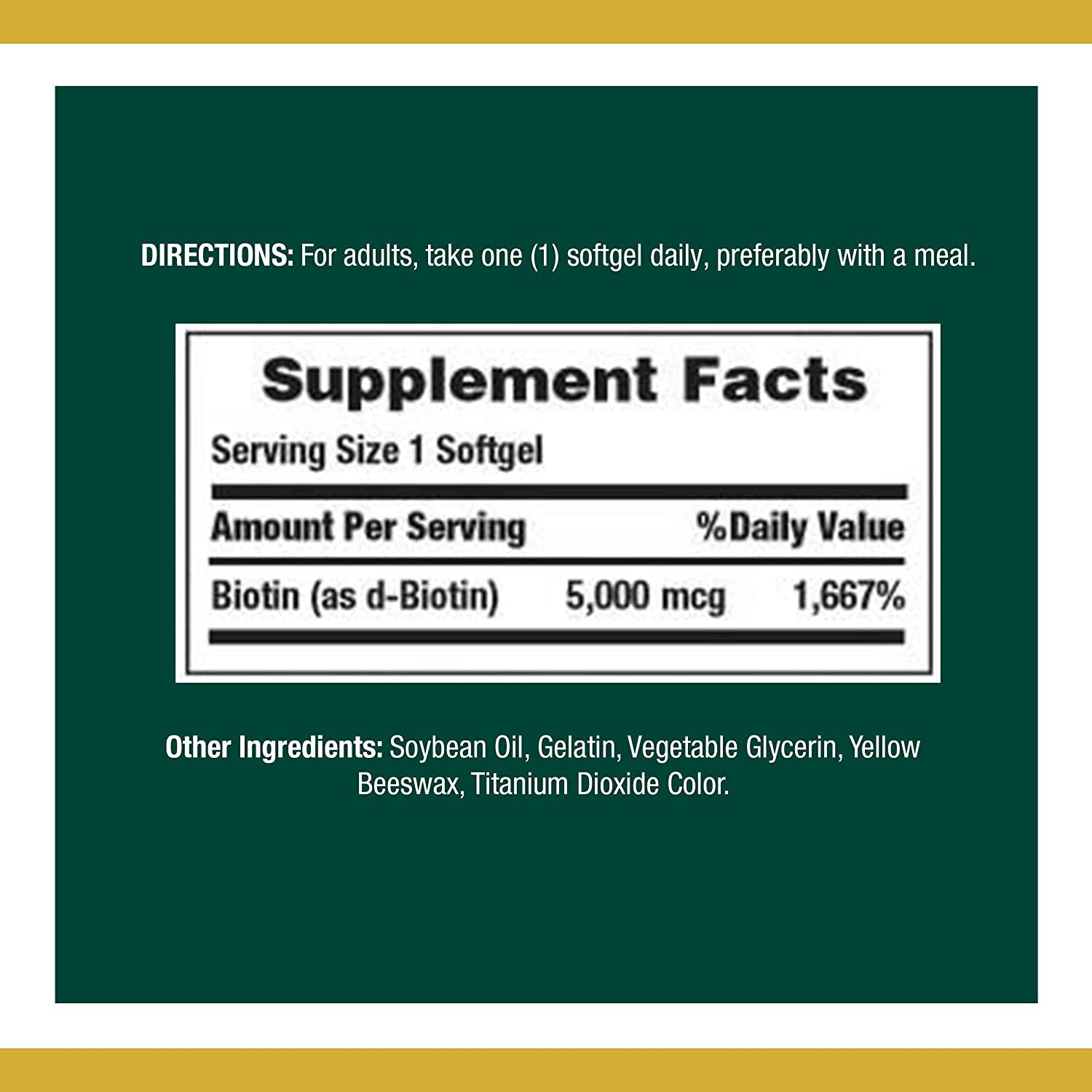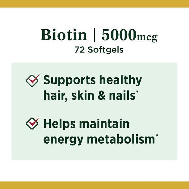 - Nature’s Bounty Biotin Softgels, 5000 mcg, 72 Ct: