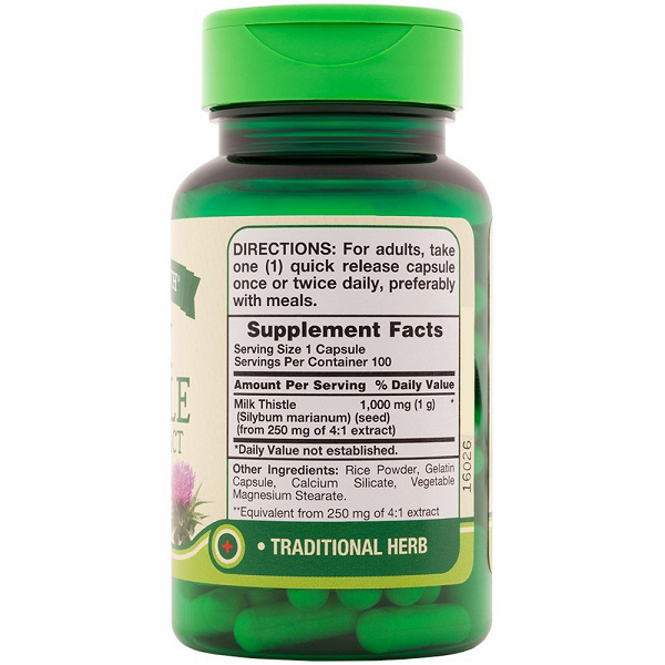 Milk Thistle, Seed Extract, 1000mg, Capsules, Bottle 100 CT Herbal Supplement. Gluten free. Silybum Marianum, most commonly known as Milk Thistle, is a traditional herb that has been used for centuries to support overall wellness. Quality guarantee. naturestruthproducts.com. Traditional herb. (These statements have not been evaluated by the Food and Drug Administration. This product is not intended to diagnose, treat, cure or prevent any disease.) For adults, take one (1) quick release capsule once or twice daily, preferably with meals.