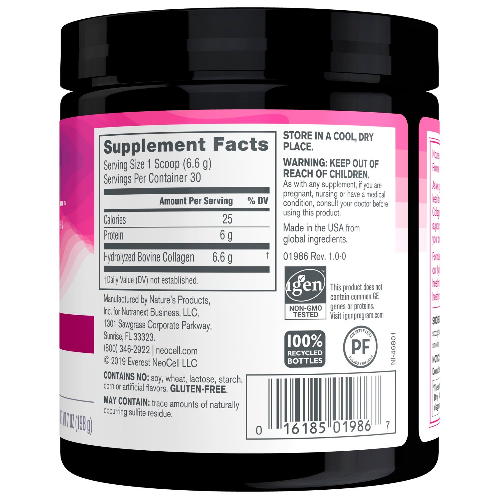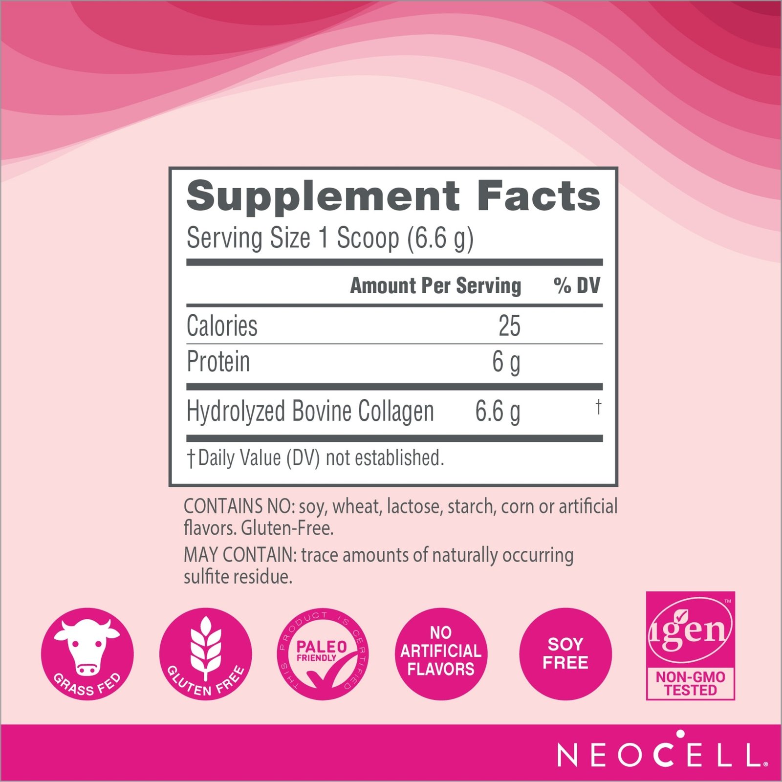 • COLLAGEN PEPTIDES: using NeoCell’s advanced hydrolyzation process, large collagen molecules are enzymatically hydrolyzed into small peptides that are bioavailable in the body