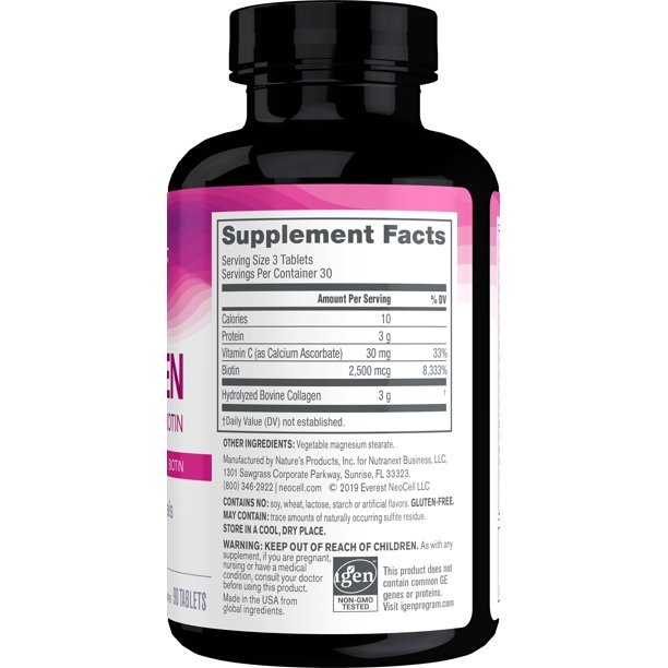 - COLLAGEN TABLETS: For maximum results, take 6 tablets every day. Contains 6,000mg NeoCell Collagen Types 1 & 3 per serving + Vitamin C
