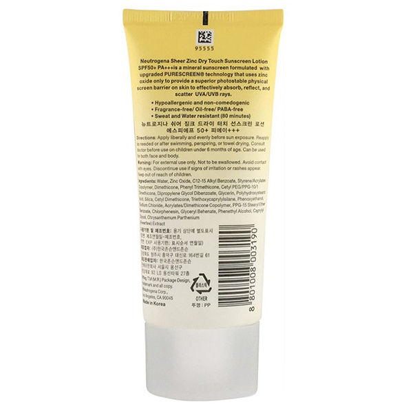 Neutogena Sheer Zinc Dry Touch Sunscreen Spf 50+ (For Sensitive Skin) White 80ml