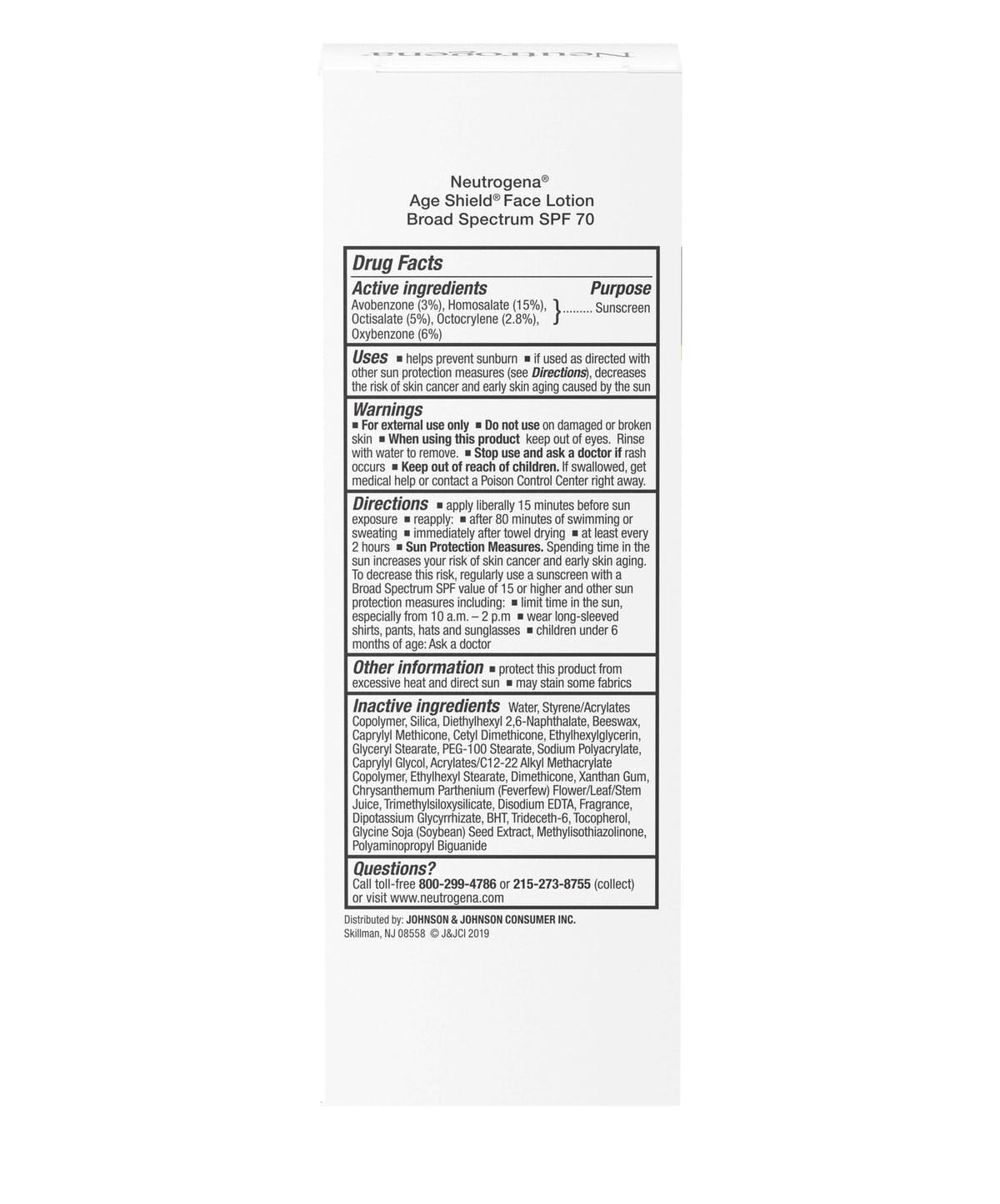 Neutrogena Age Shield Face Oil Free Sunscreen SPF70 88ml