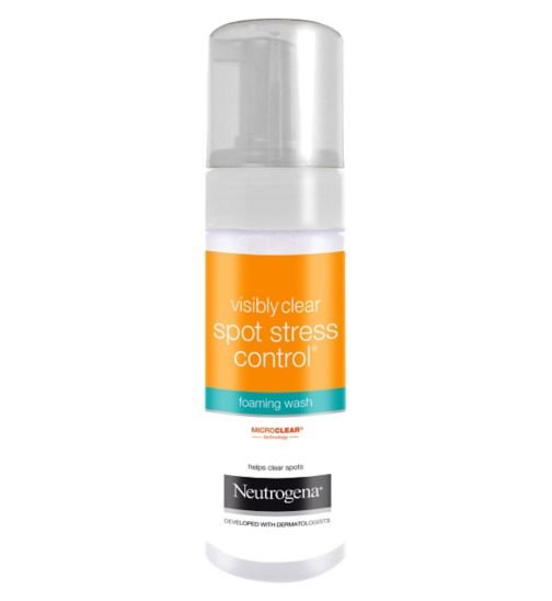 Neutrogena visibly clear spot stress control daily foaming wash is an oil-free foaming wash that helps control the breakout cycle. Cleansing properties of the formula help fight and reduce breakouts. Natural aloe vera, the product soothes and cares for even sensitive skin and is gentle enough to be used everyday.