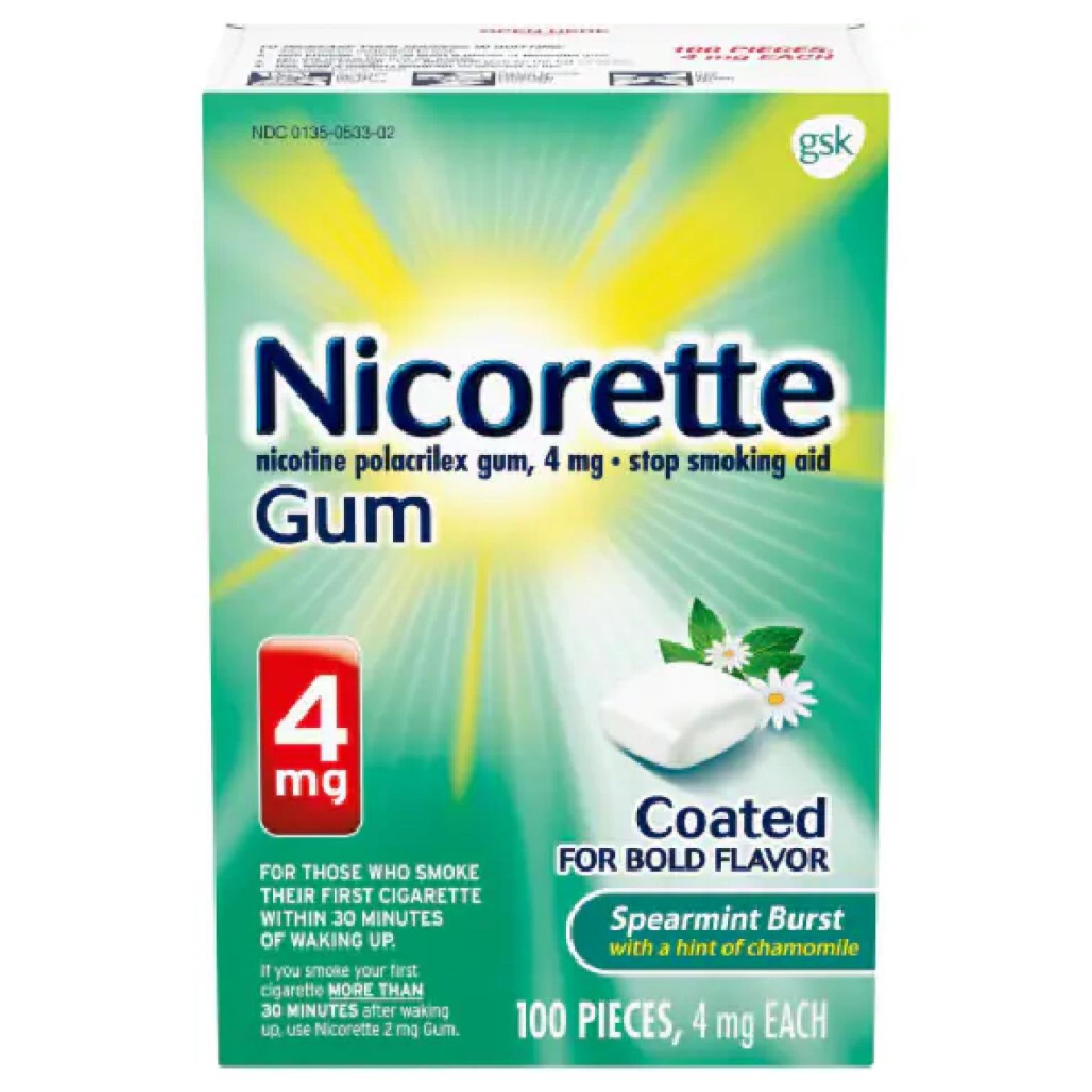 Nicorette Spearmint Burst Nicotine Gum 4mg(USA)