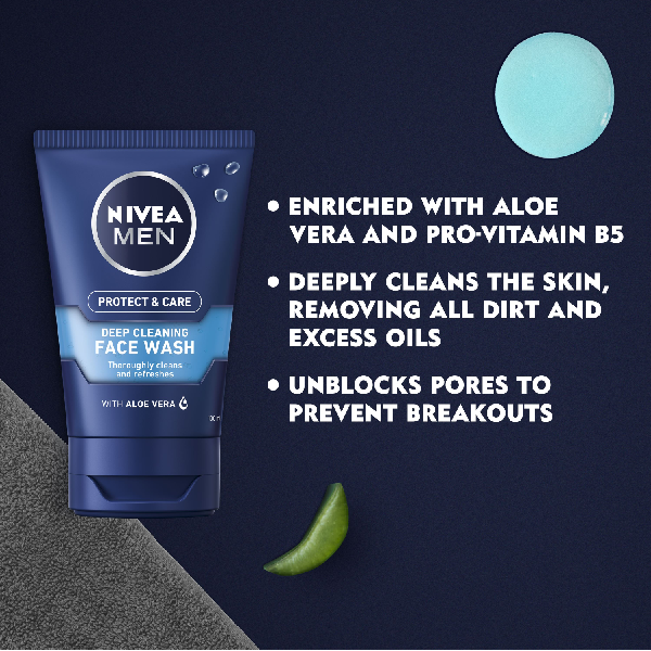 NIVEA MEN Deep Cleaning Face Wash is for men who want thoroughly clean and clear skin. It is an effective cleansing gel formula, with Provitamin B5 and Vitamin E: