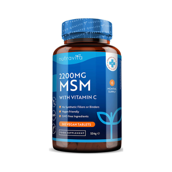 MSM 2200mg Tablets – 365 Vegan Tablets – Methylsulfonylmethane with 80mg Vitamin C – 6 Month Supply – Made in The UK by Nutravita