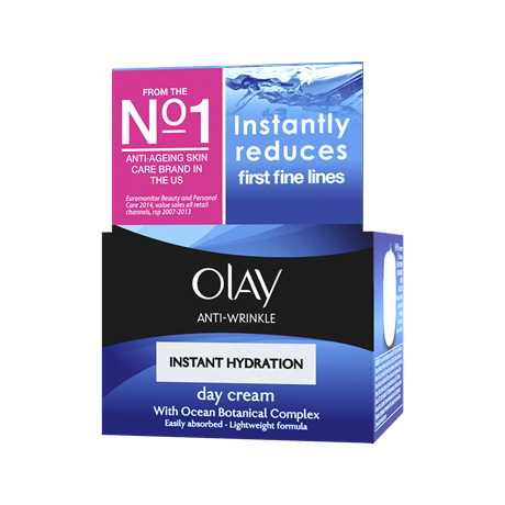 - Olay Anti-Wrinkle Instant Hydration day cream instantly reduces first fine lines