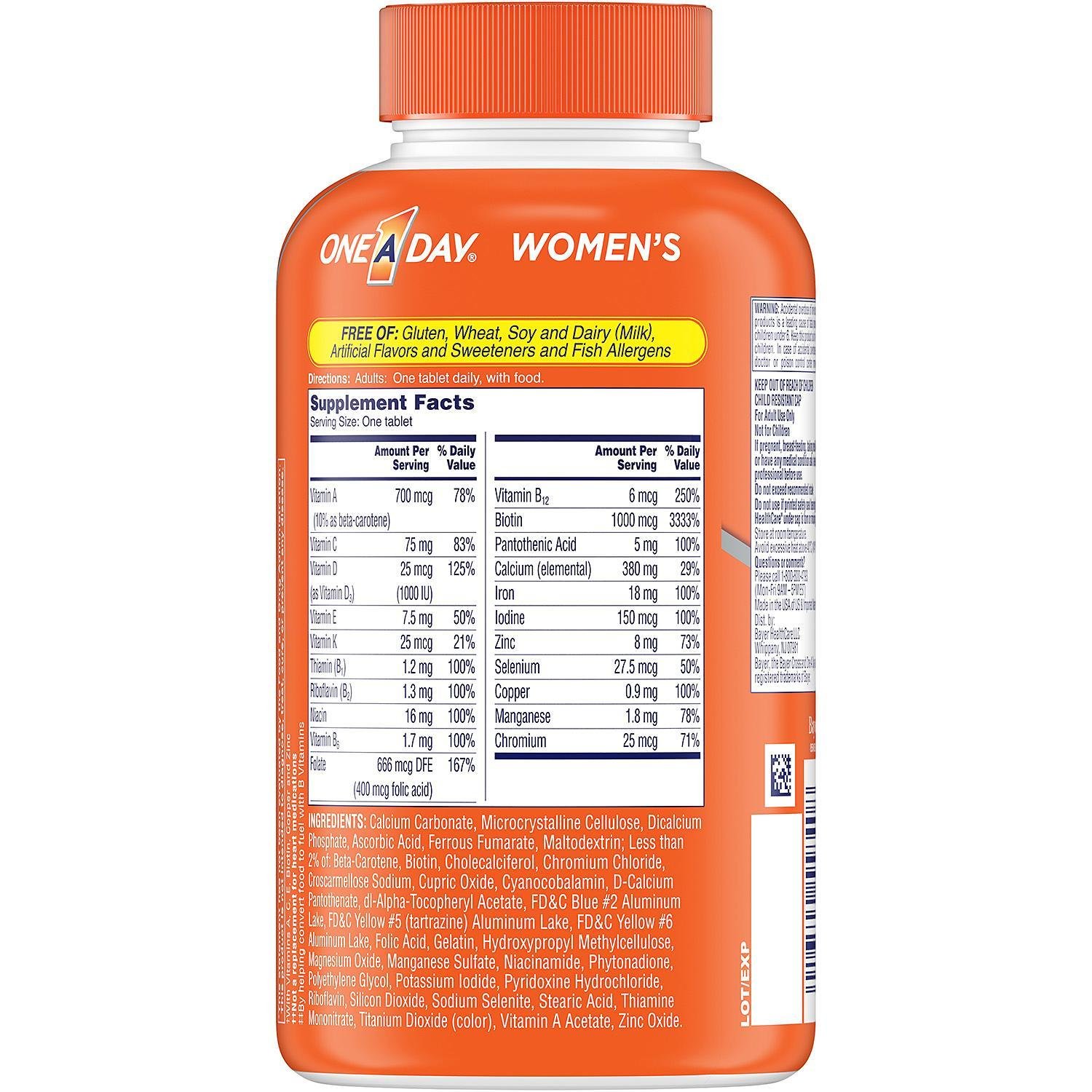 One A Day Women’s Multivitamin is free of gluten, wheat, dairy, artificial flavors and artificial sweeteners.