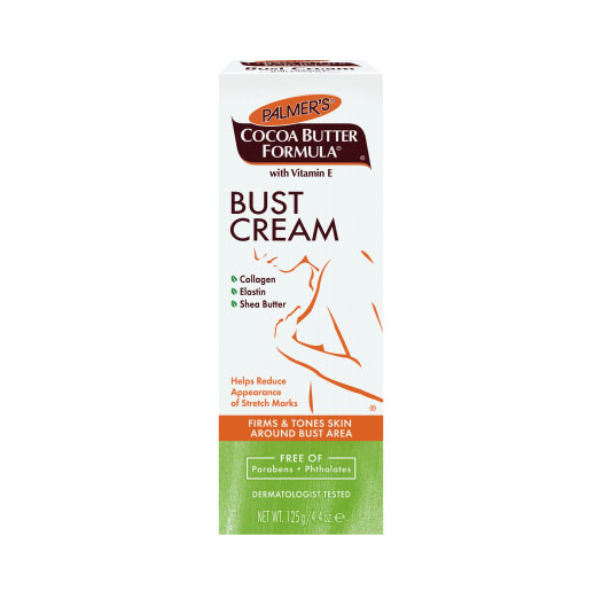Palmer’s Cocoa Butter Formula Bust Cream is a specially formulated cream that smoothes on like a gel. It will firm and tone your bust area even after pregnancy and weight loss. Made with a unique blend of pure Cocoa Butter, Shea Butter and Vitamin E, to maximize your skin’s moisturization, while Collagen, Elastin and other proven ingredients help support the skin around the bust area and increase tone and firmness.