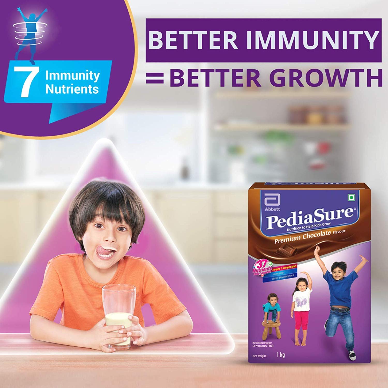 Disclaimers – Visible Growth in 90 days/Clinically Proven to improve immunity, reduce sick days and give visible growth in 90 days – Alarcon P. Clin. Pediatr. 2003;42:209-217 (ONS group consuming 40ml/KG/day of Pediasure in addition to normal diet), In children at nutritional risk, No.1 Pediatrician Prescribed Brand, As per CMARC : CPR (India) MAT Jan-Dec’17, No. 1 Trusted Brand- As per the Brand Trust report India Study 2017, Used by more than 1 million Households in India, As per IMRB HH panel data MAT July 2017
