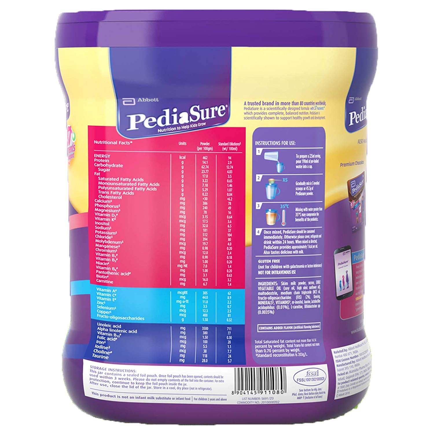 Serving suggestion– Add 2 Scoops of PediaSure health drink powder to 150 ml of whole milk, Recommended number of servings for your kid – 2 servings per day, For Consumption in water add 5 scoops of PediaSure health drink powder to 190 ml of water