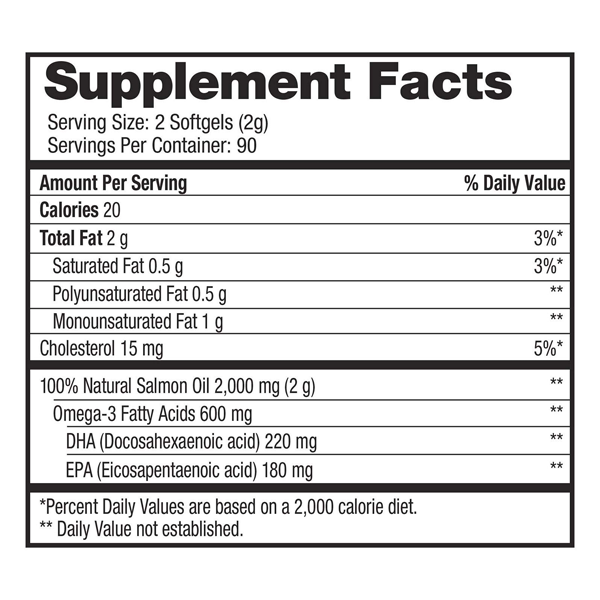 - Main ingredients: 95% Salmon Oil