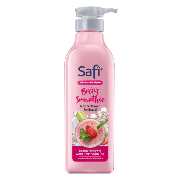 Safi Berry Smoothie Anti-Bacterial Shower Gel is inspired by refreshing mocktail beverage that will refresh you at the end of your hot hectic day with refreshing blends of natureƒ??s goodness, antibacterial protection and a fragrant mocktail smell. It lathers well, leaving the skin feeling soft and supple, yet energized.
