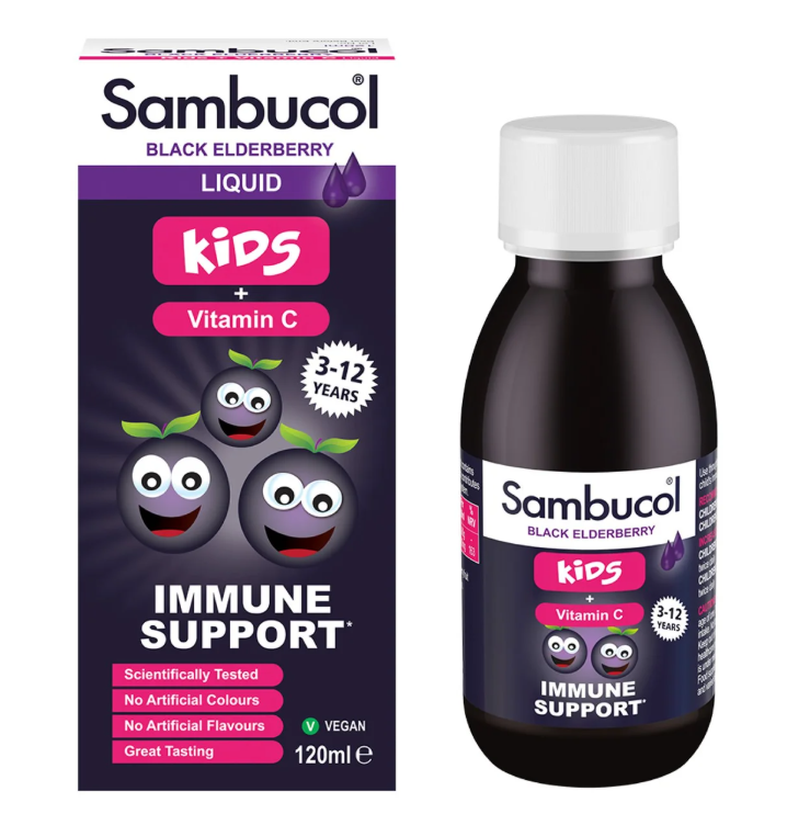 Keep kids healthy all year round! Sambucol for Kids is a great tasting liquid containing Black Elderberries and Vitamin C which supports the immune system.