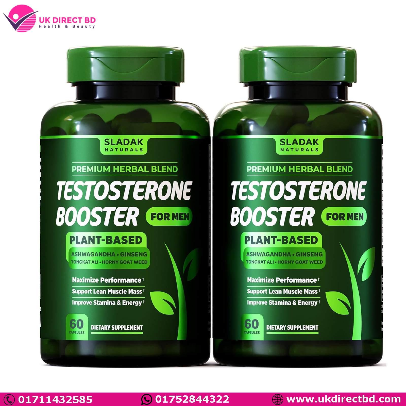 SLADAK NATURALS Testosterone Booster Supplement for Men, Male Enhancing Test Boost Ashwagandha, L-Arginine, Tongkat Ali, Tribulus + More Workout, Build Muscle, Strength, Energy & Performance 2 Month Supply