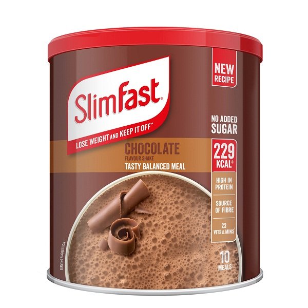 Chocolate flavour milkshake powder meal replacement for weight control.