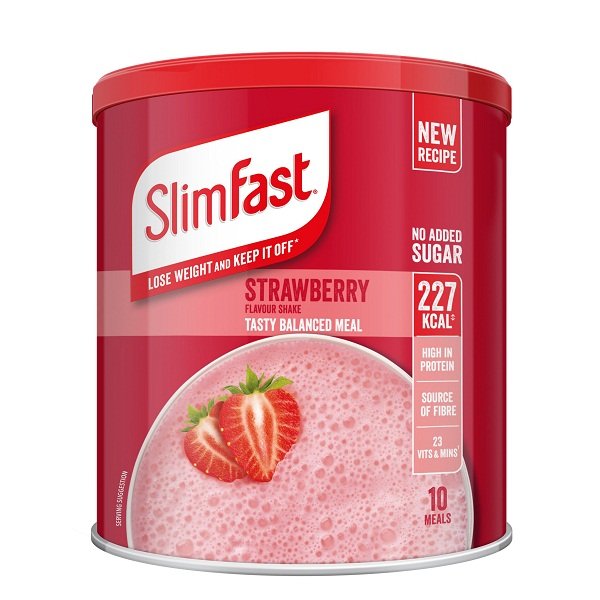 Strawberry flavour milkshake powder meal replacement for weight control.