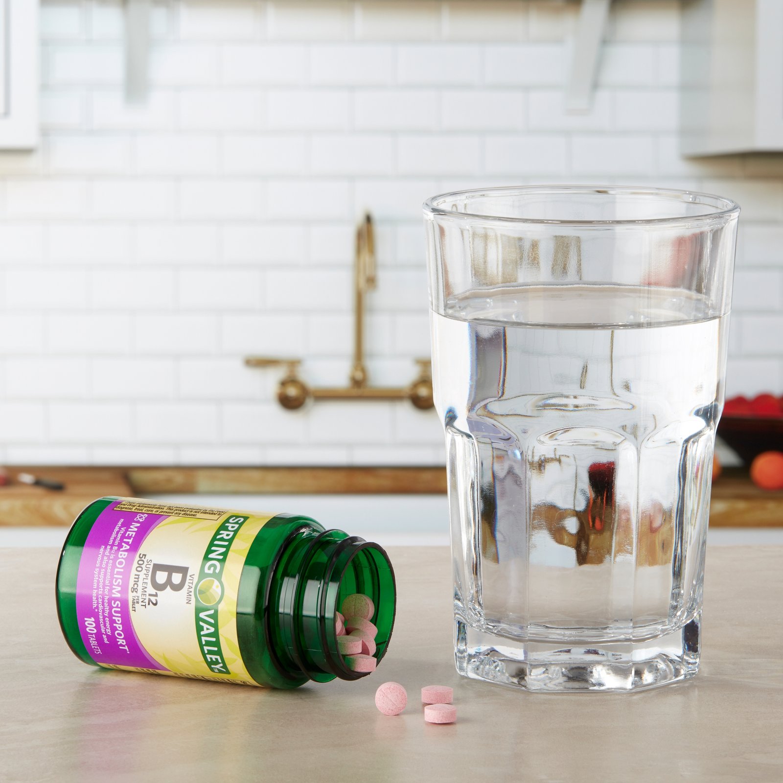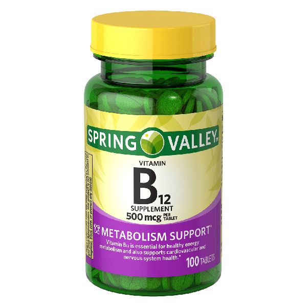 - 100-count supply of Spring Valley vitamin B12 pills