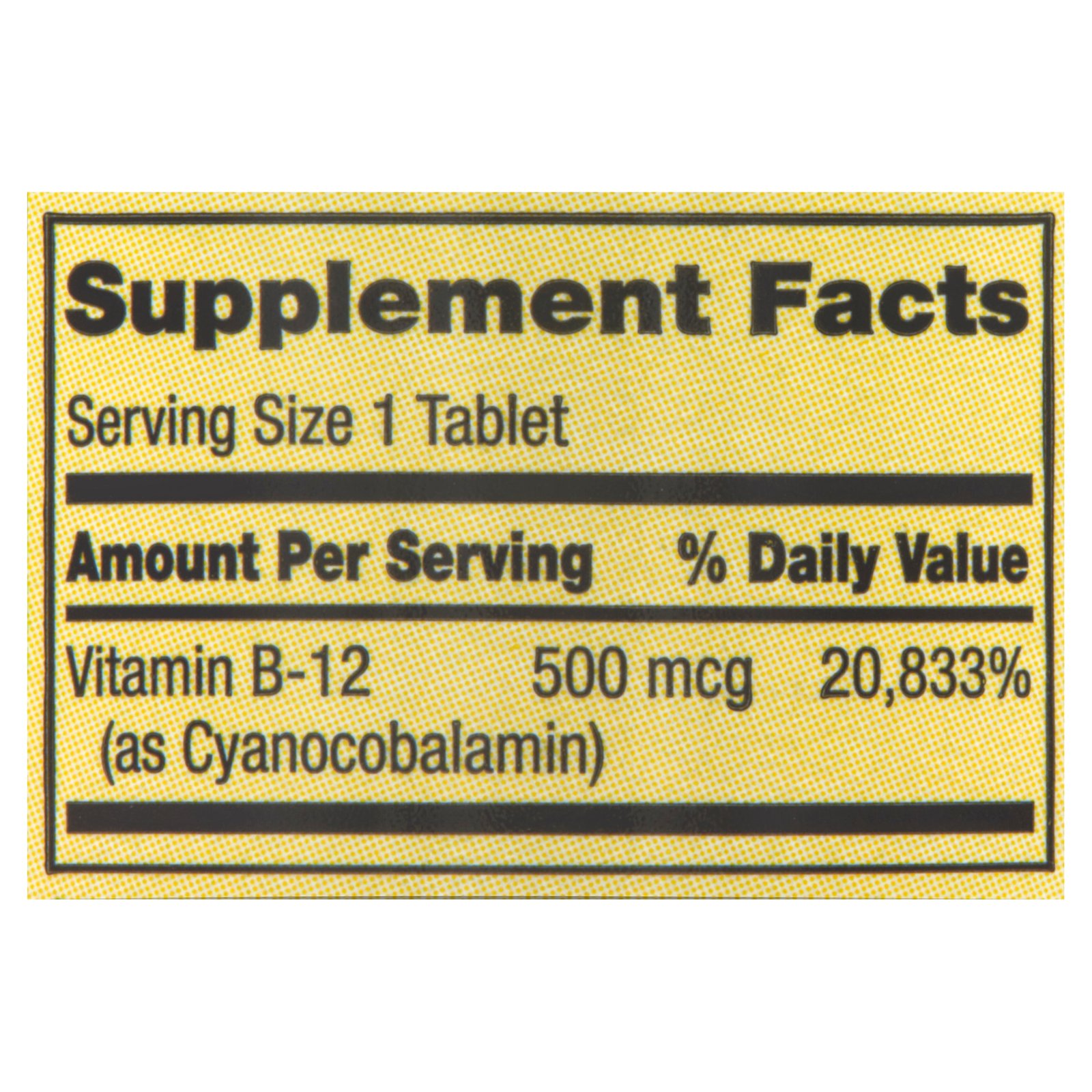 - 500mcg B12 per tablet
