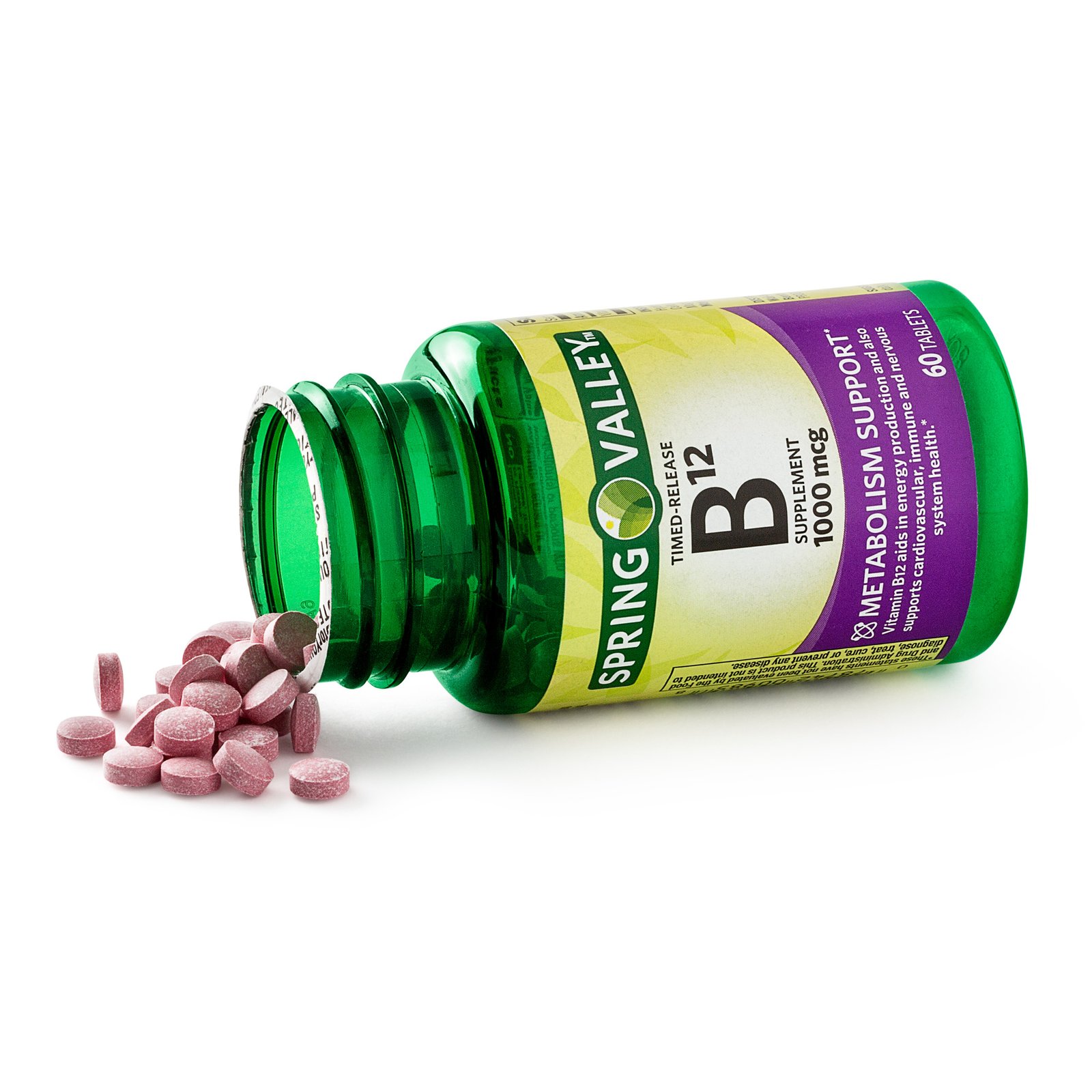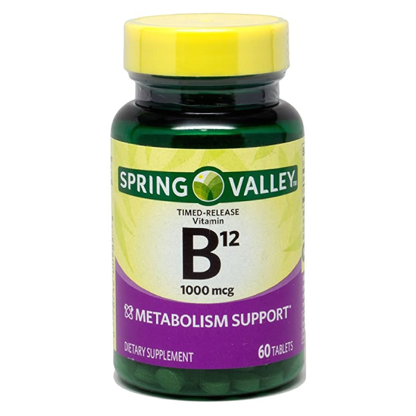 Supplement your daily diet with these Spring Valley Vitamin B12 Timed-Release Tablets (1000mcg). They’re designed to gradually dispense B12, an important vitamin needed for cell metabolism and healthy brain function. These vitamin B12 tablets also help to produce red blood cells. Easy to swallow, these pills contain no gluten, preservatives or artificial colors or flavors.Spring Valley understands living a healthy, balanced lifestyle is the key to being your best self. With an affordable range of products inspired by nature, Spring Valley supports you and your family’s health and holistic wellbeing.